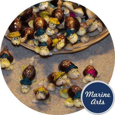 Cute mini turtles made from cowry shells. Presented as 50 turtles in an 8 inch basket. Suitable for stand-alone sales or fixing onto novelty items.
