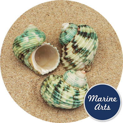 Commonly known as turbos or turbans, these abundant shells are part of the Turbinidae family of marine gastropods found in Indo-Pacific seas. These shells are frequently polished to remove the outer green layer to reveal an inner iridescent layer of Mother of Pearl and subsequently sold as Pearl Silvermouth shells.